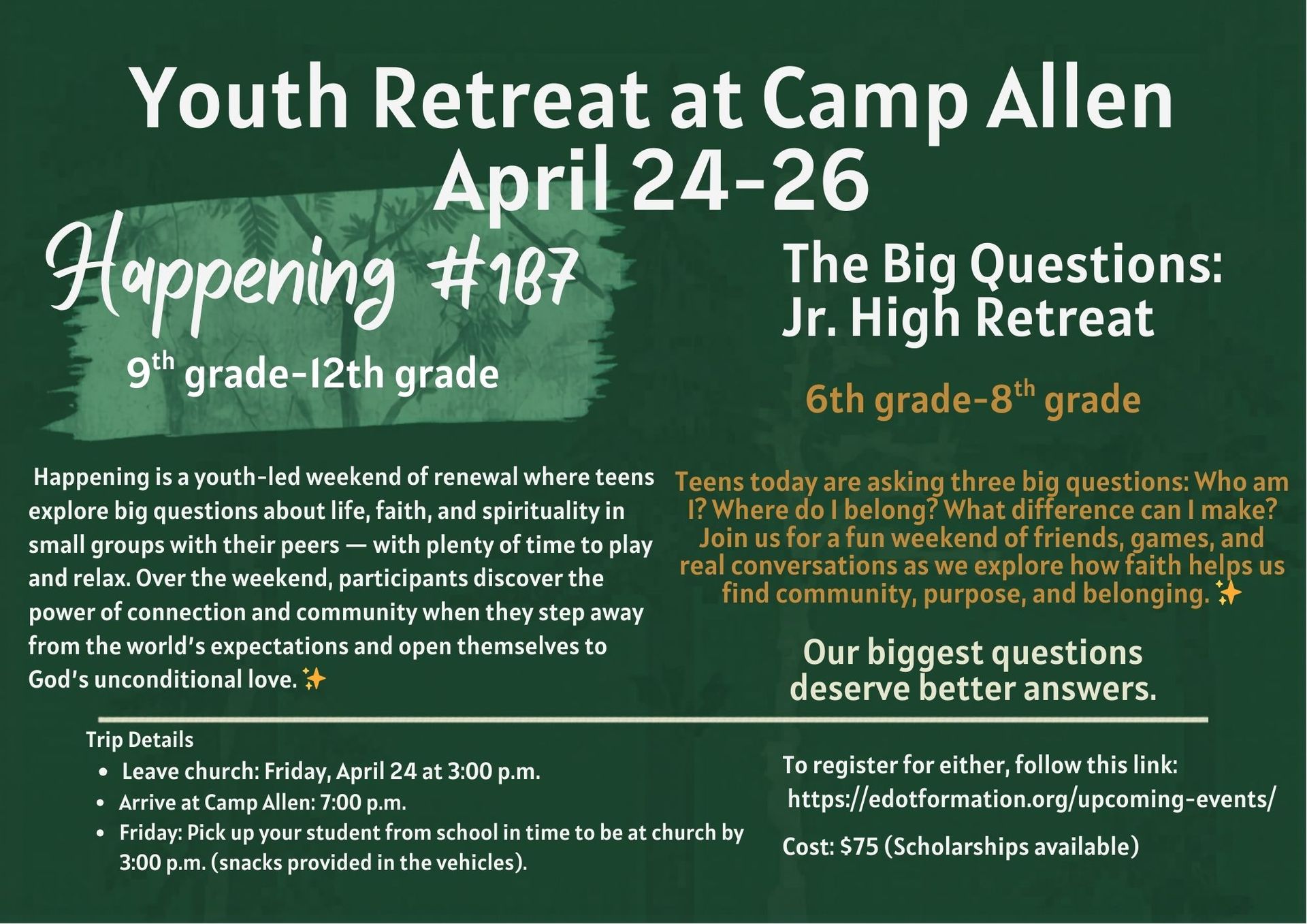 We can't wait to get you to know you and to worship with you.