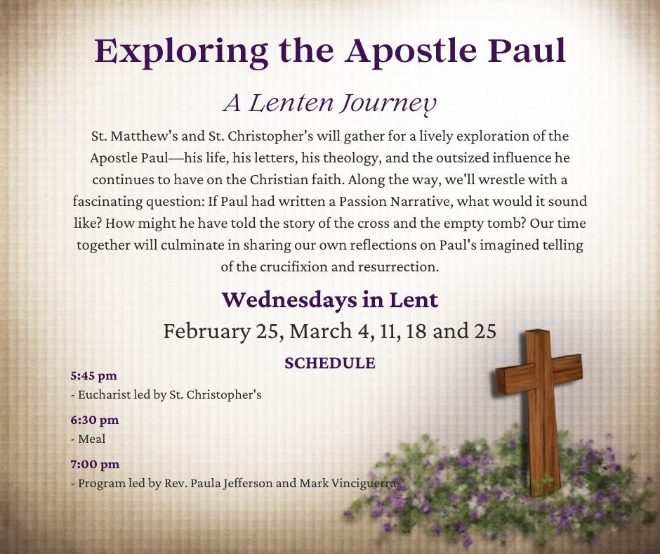 - 10:45 a.m. St. Christopher's Christian Education for all ages