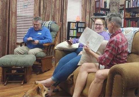 We gather from 5:00 - 7:30 p.m. dinner, fellowship and Scripture at Molly’s house. (We do not meet on the third Sundays of the month and we take a hiatus during the summer months.)